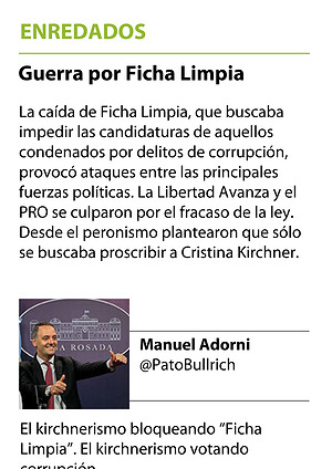 La caída de Ficha Limpia, que buscaba impedir las candidaturas de aquellos condenados por delitos de corrupción, provocó ataques entre las principales fuerzas políticas. La Libertad Avanza y el PRO se culparon por el fracaso de la ley. Desde el peronismo plantearon que sólo se buscaba proscribir a Cristina Kirchner.