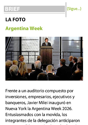 Frente a un auditorio compuesto por inversiones, empresarios, ejecutivos y banqueros, Javier Milei inauguró en Nueva York la Argentina Week 2026. Entusiasmados con la movida, los integrantes de la delegación anticiparon que es posible organizarlo todos los años. Incluso, hablaron de replicarlo este mismo año con una sede europea.