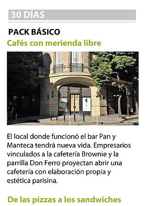 El local donde funcionó el bar Pan y Manteca tendrá nueva vida. Empresarios vinculados a la cafetería Brownie y la parrilla Don Ferro proyectan abrir una cafetería con elaboración propia y estética parisina.