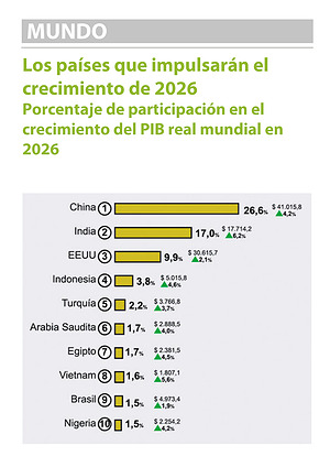 Porcentaje de participación en el crecimiento del PIB real mundial en 2026
