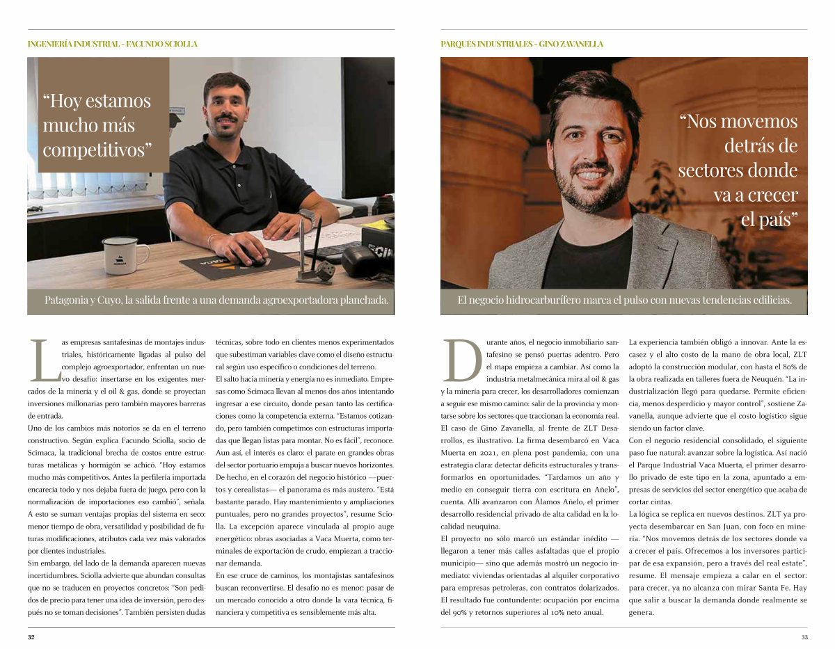 Las empresas santafesinas de montajes industriales, históricamente ligadas al pulso del complejo agroexportador, enfrentan un nuevo desafío: insertarse en los exigentes mercados de la minería y el oil & gas, donde se proyectan inversiones millonarias pero también mayores barreras de entrada. Uno de los cambios más notorios se da en el terreno constructivo. Según explica Facundo Sciolla, socio de Scimaca, la tradicional brecha de costos entre estructuras metálicas y hormigón se achicó.“ Hoy estamos mucho más competitivos. Antes la perfilería importada encarecía todo y nos dejaba fuera de juego, pero con la normalización de importaciones eso cambió”, señala. A esto se suman ventajas propias del sistema en seco: menor tiempo de obra, versatilidad y posibilidad de futuras modificaciones, atributos cada vez más valorados por clientes industriales. Sin embargo, del lado de la demanda aparecen nuevas incertidumbres. Sciolla advierte que abundan consultas que no se traducen en proyectos concretos:“ Son pedidos de precio para tener una idea de inversión, pero después no se toman decisiones”. También persisten dudas técnicas, sobre todo en clientes menos experimentados que subestiman variables clave como el diseño estructural según uso específico o condiciones del terreno. El salto hacia minería y energía no es inmediato. Empresas como Scimaca llevan al menos dos años intentando ingresar a ese circuito, donde pesan tanto las certificaciones como la competencia externa.“ Estamos cotizando, pero también competimos con estructuras importadas que llegan listas para montar. No es fácil”, reconoce. Aun así, el interés es claro: el parate en grandes obras del sector portuario empuja a buscar nuevos horizontes. De hecho, en el corazón del negocio histórico— puertos y cerealistas— el panorama es más austero.“ Está bastante parado. Hay mantenimiento y ampliaciones puntuales, pero no grandes proyectos”, resume Sciolla. La excepción aparece vinculada al propio auge energético: obras asociadas a Vaca Muerta, como terminales de exportación de crudo, empiezan a traccionar demanda. En ese cruce de caminos, los montajistas santafesinos buscan reconvertirse. El desafío no es menor: pasar de un mercado conocido a otro donde la vara técnica, financiera y competitiva es sensiblemente más alta.