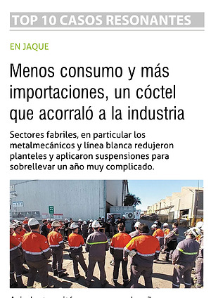Sectores fabriles, en particular los metalmecánicos y línea blanca redujeron planteles y aplicaron suspensiones para sobrellevar un año muy complicado.