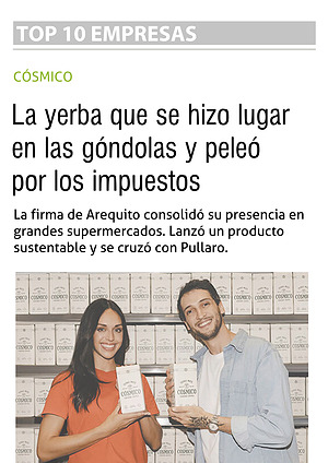 Para Yerba Mate Cósmico, 2025 fue el año en que un fenómeno viral se graduó definitivamente como empresa. Lo que comenzó como el proyecto de una carismática pareja de influencers –el santafesino Hernán Regiardo y la estadounidense Samantha Trottier– demostró tener la consistencia necesaria para sobrevivir fuera de la pantalla del celular. La firma, que opera bajo la razón social Asi Que Bueno SRL y tiene su base administrativa en Arequito, cerró el año con dos hitos contundentes: una expansión agresiva en las cadenas de supermercados y la multiplicación de su volumen de ventas.