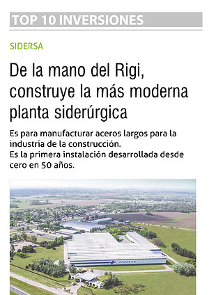 De la mano del Rigi, construye la más moderna planta siderúrgica